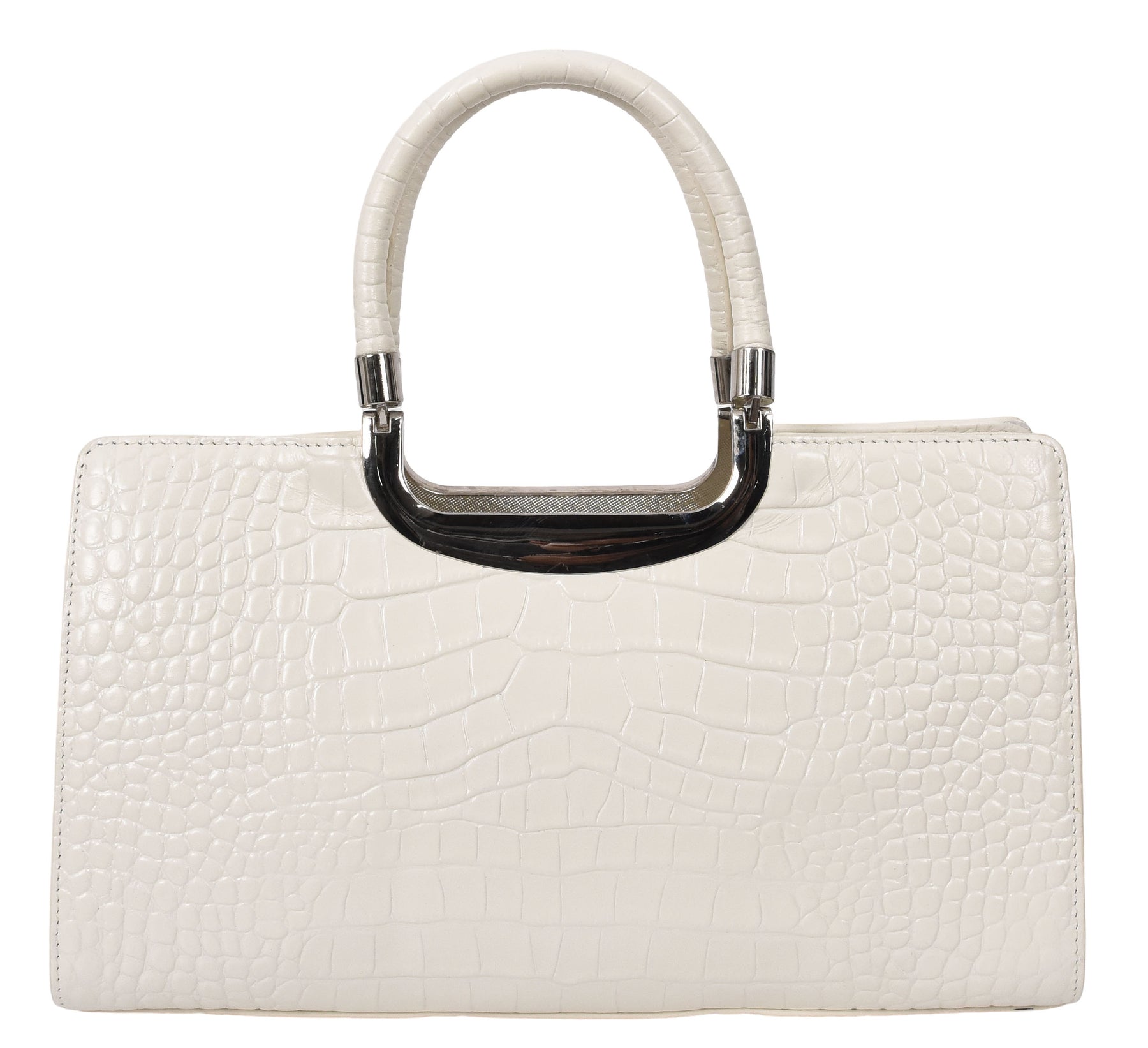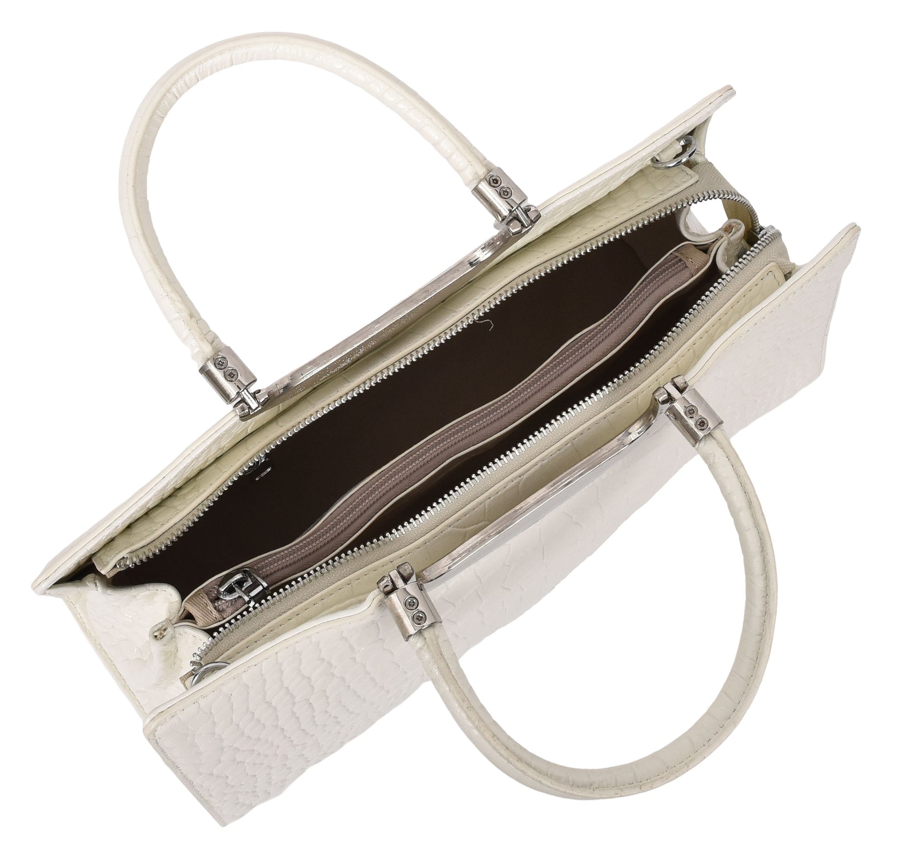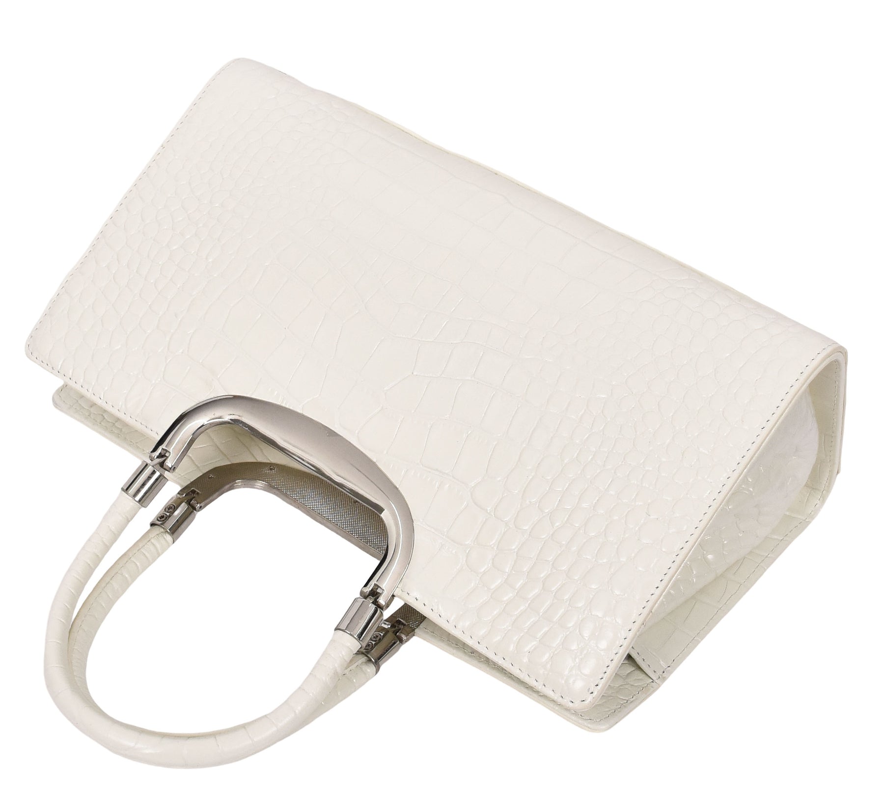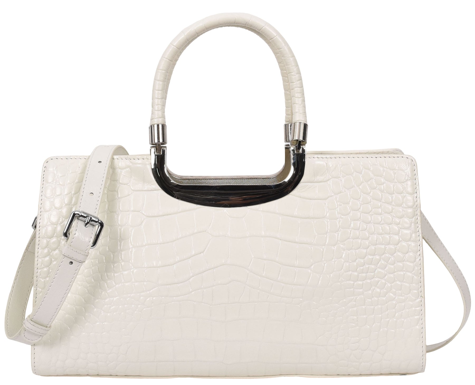 Womens Leather Croc Print Handbag Madeline White (Min Order From 10Pcs)