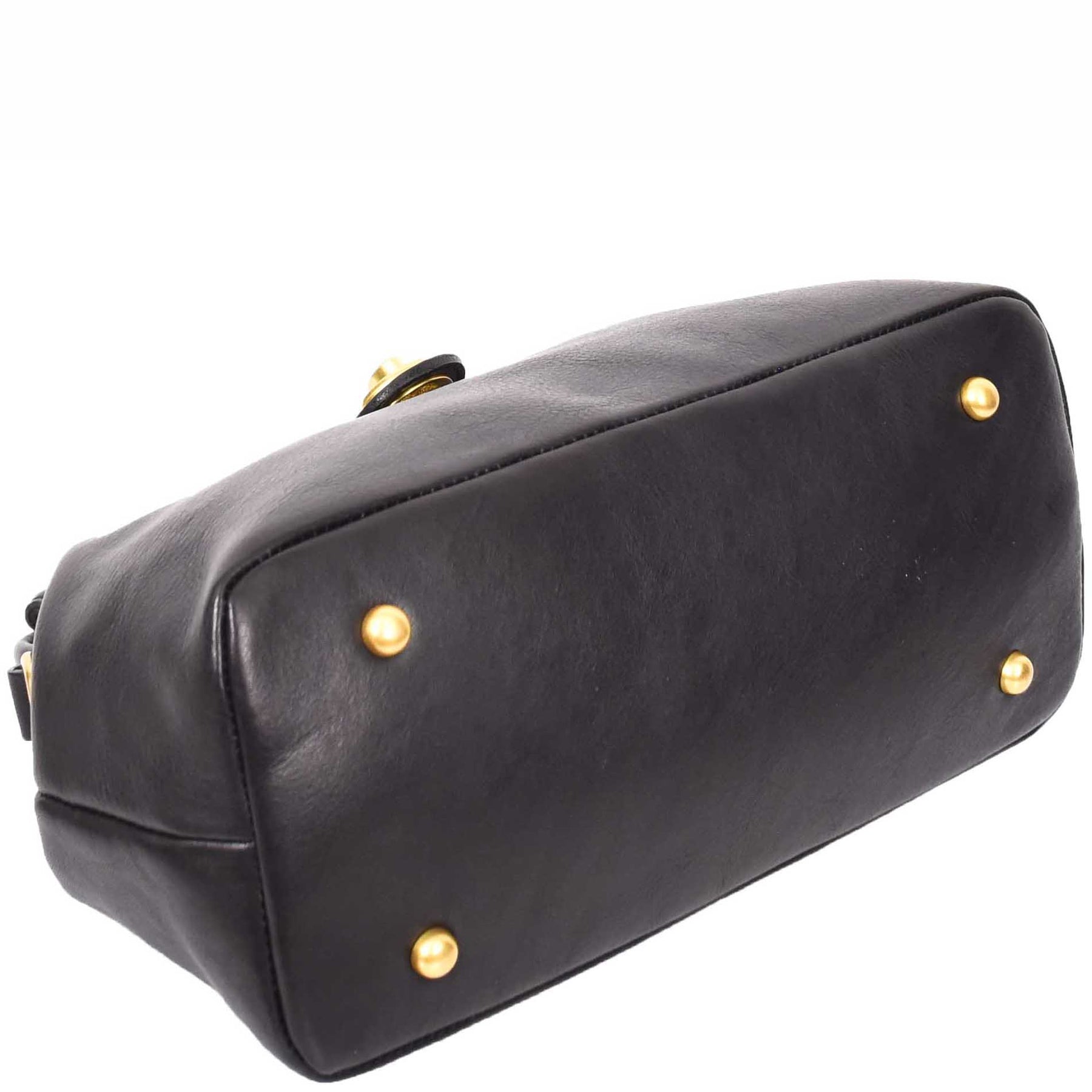 Cow full grain leather handbag. Perfect for on the go style, this bag features a grab handle and detachable long strap for easy carrying. The twist lock opening gives it a chic look, while the inside open compartment with open and zip pockets ensures your belongings stay secure. With a beautifully lined interior and sleek