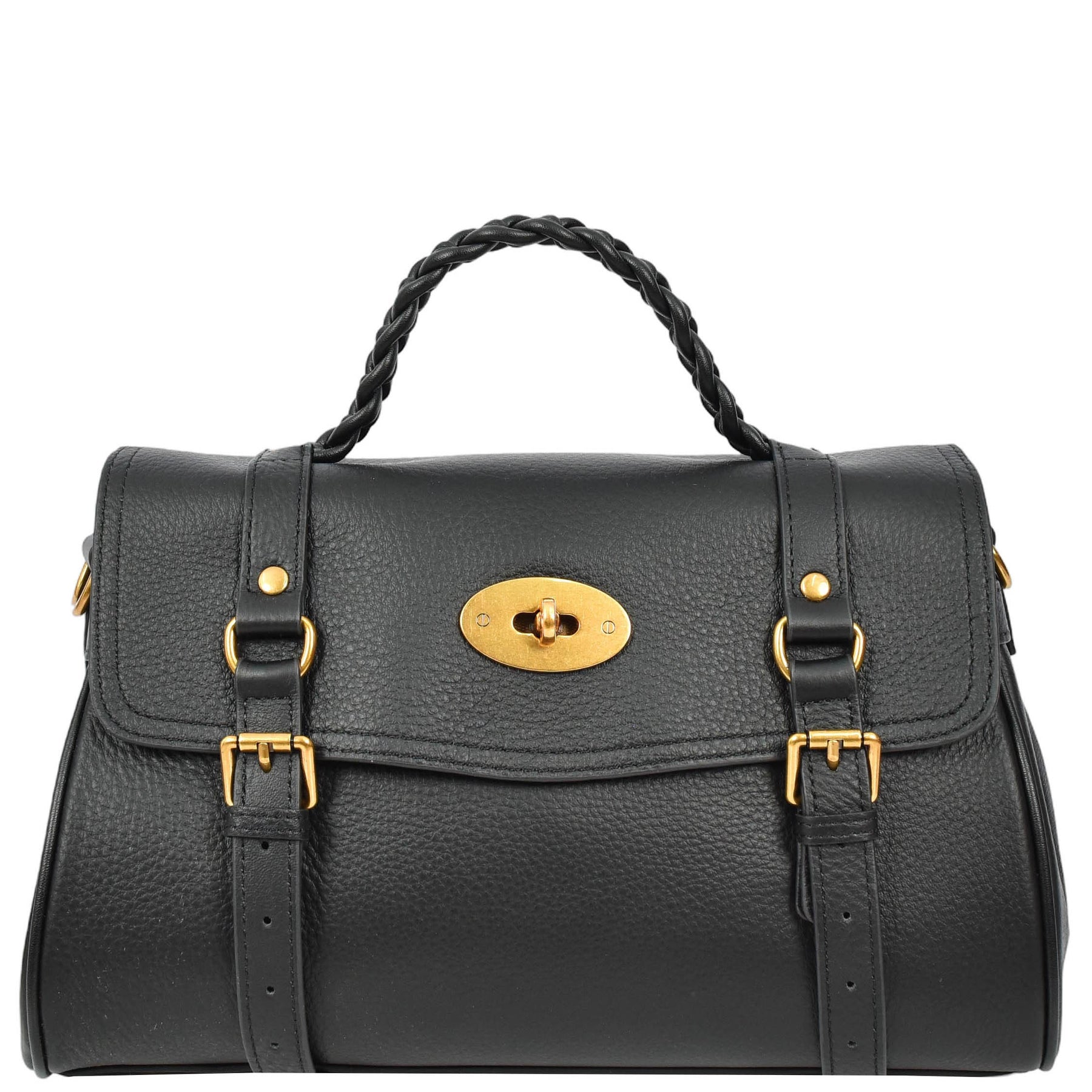Womens Real Leather Handbag Classic Satchel Top-Handle Style Greta Black (Min Order From 10Pcs)