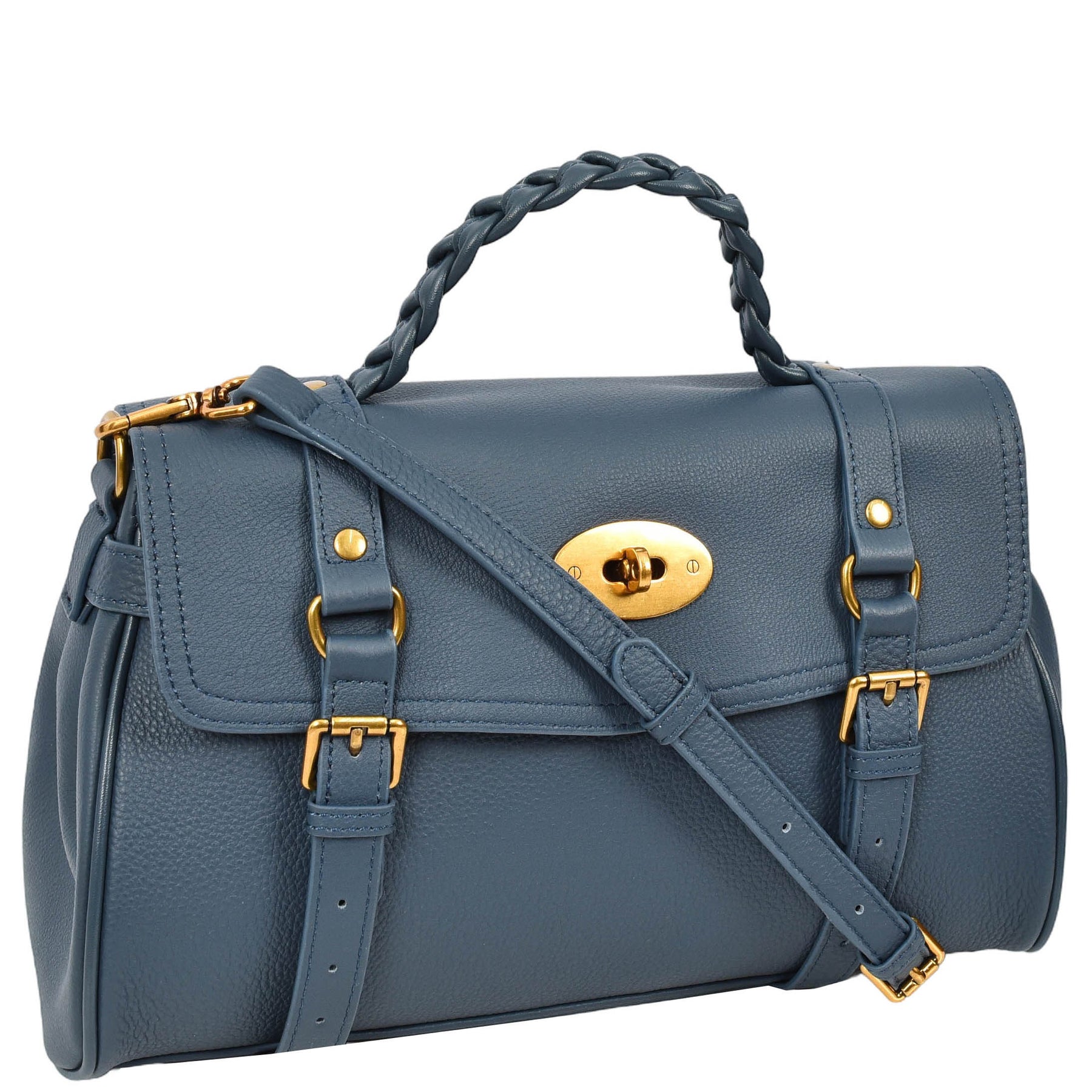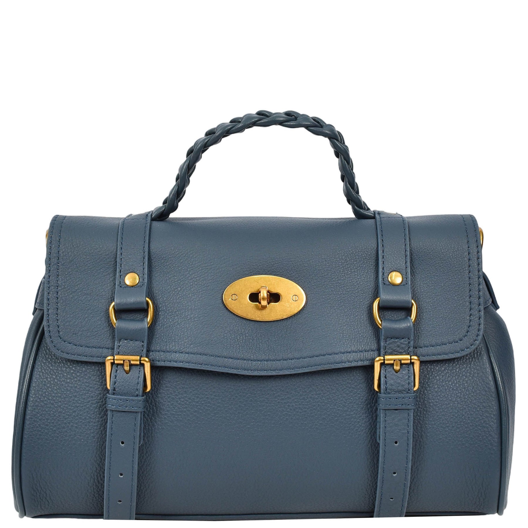 Womens Real Leather Handbag Classic Satchel Top-Handle Style Greta Blue (Min Order From 10Pcs)