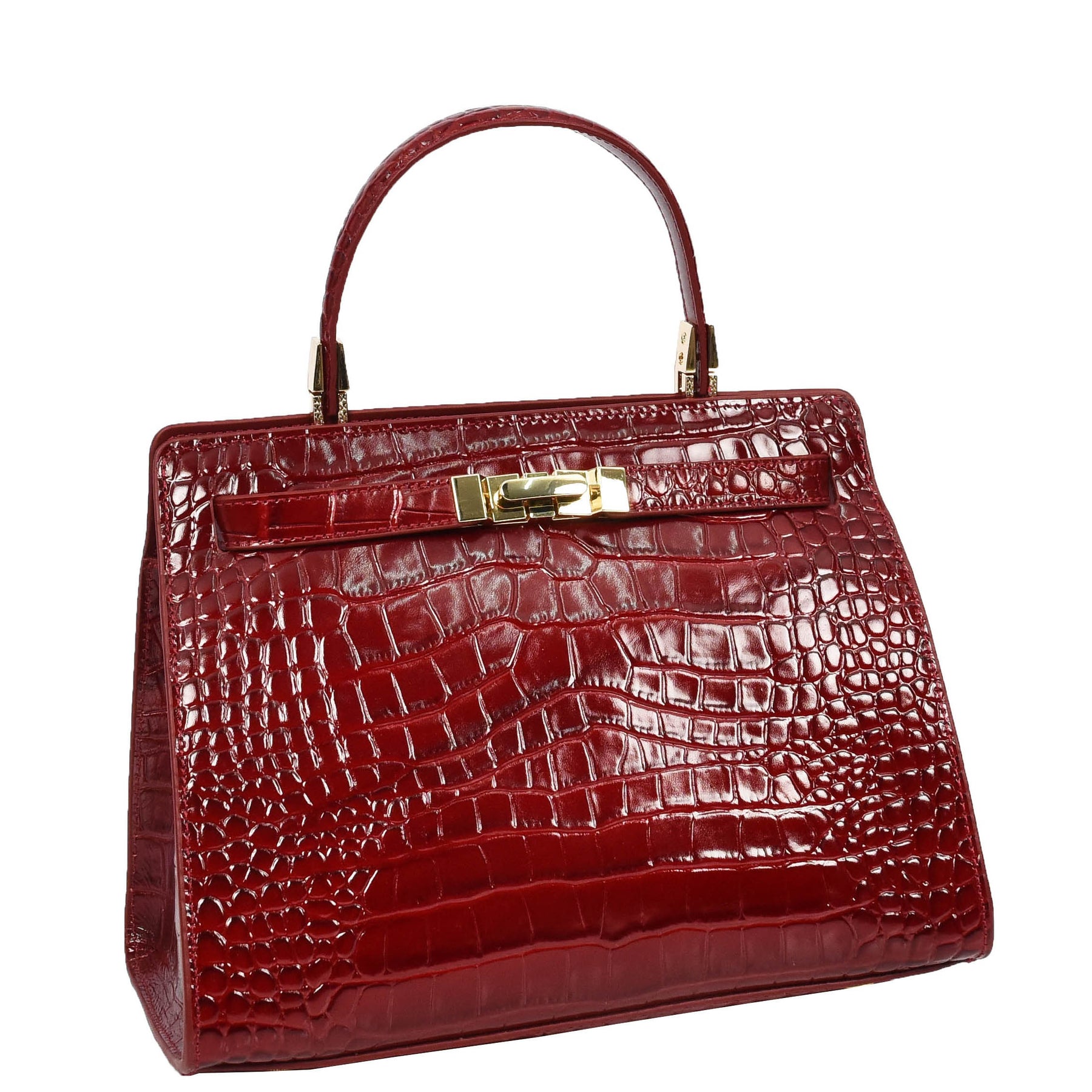 Women's Real Leather Handbag Small Organiser Top-Handle Handbag Camille Red ( Min Order From 10/Pcs )