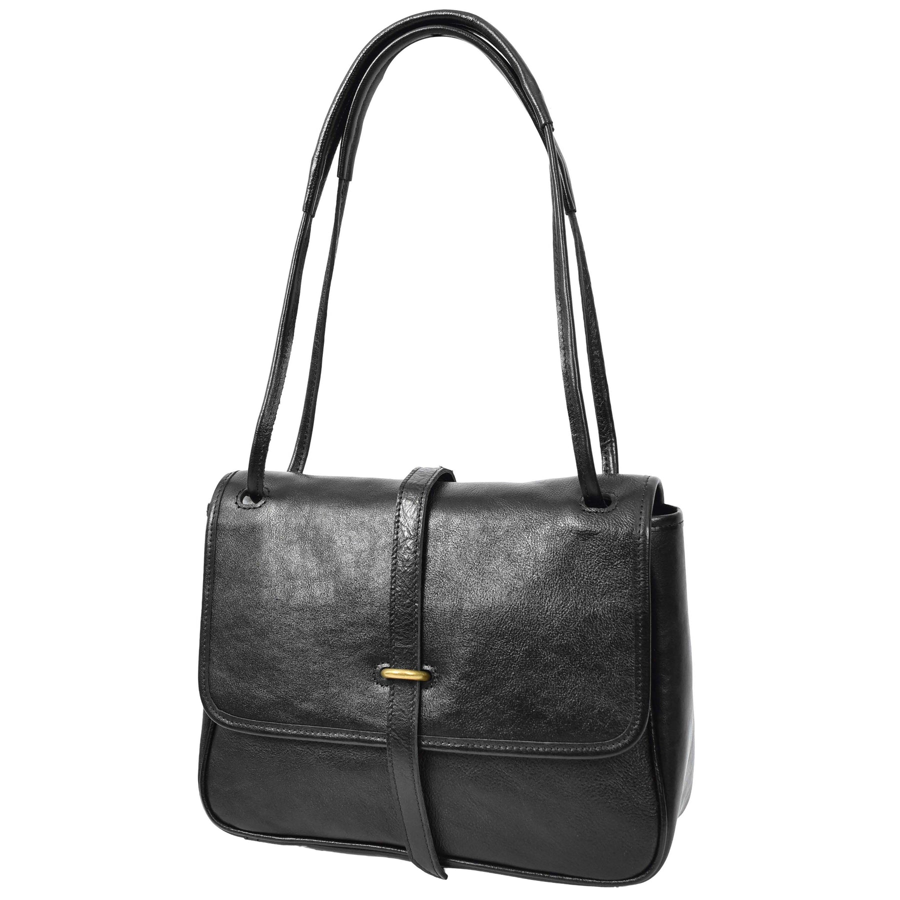 Women's Real Leather Shoulder Bag Classic Mid Size Handbag Simone Black (Min Order From 10Pcs)