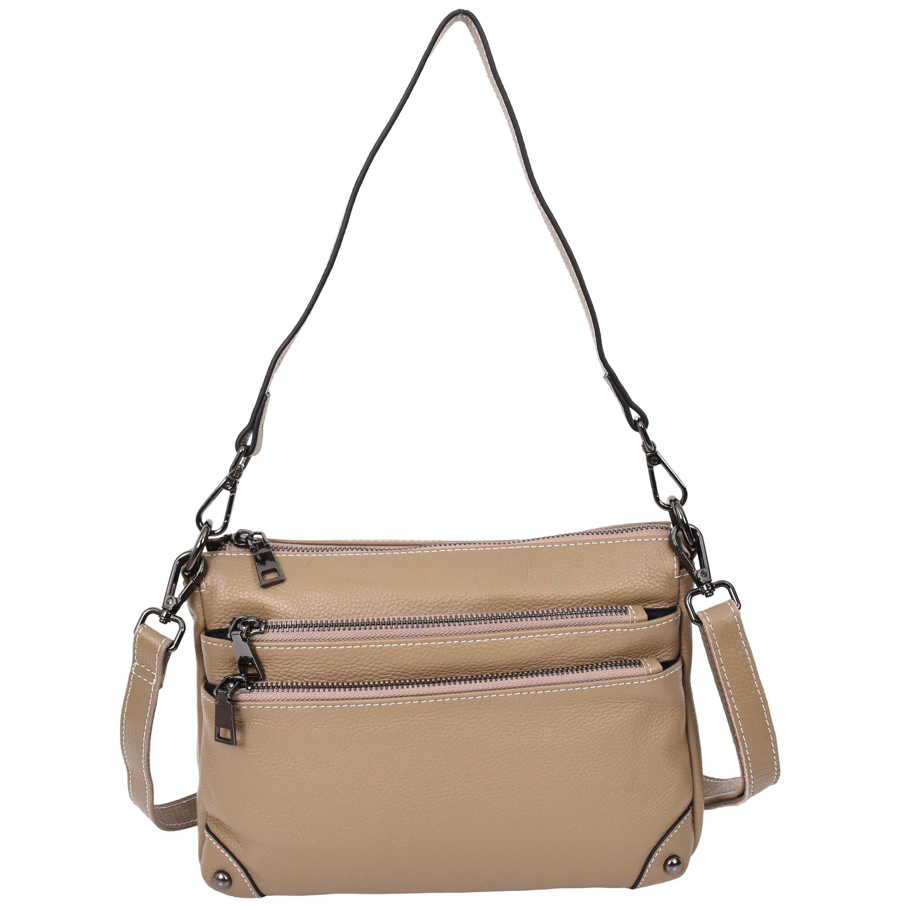 Women's Leather 2-in-1 Cross Body Shoulder Bag Olivia Beige ( Min Order From 10/Pcs )